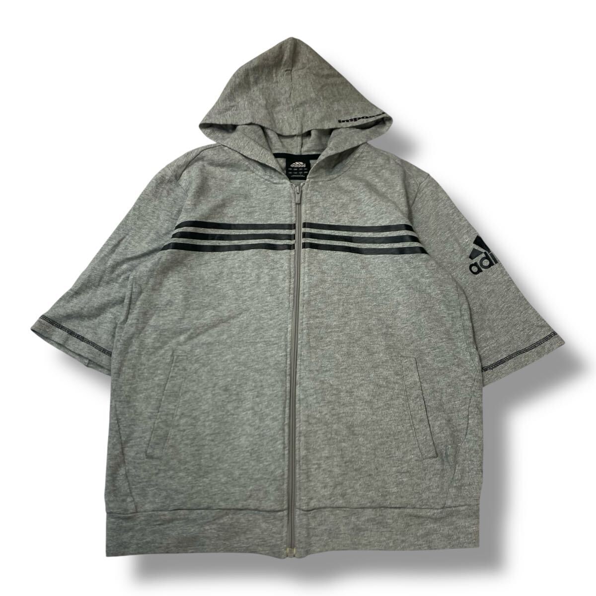 > TR0921 【Y2K】adidas アディダス ジップアップ パーカー フーディー パフォーマンスロゴ 半袖 レイヤード ユニセックス グレー L