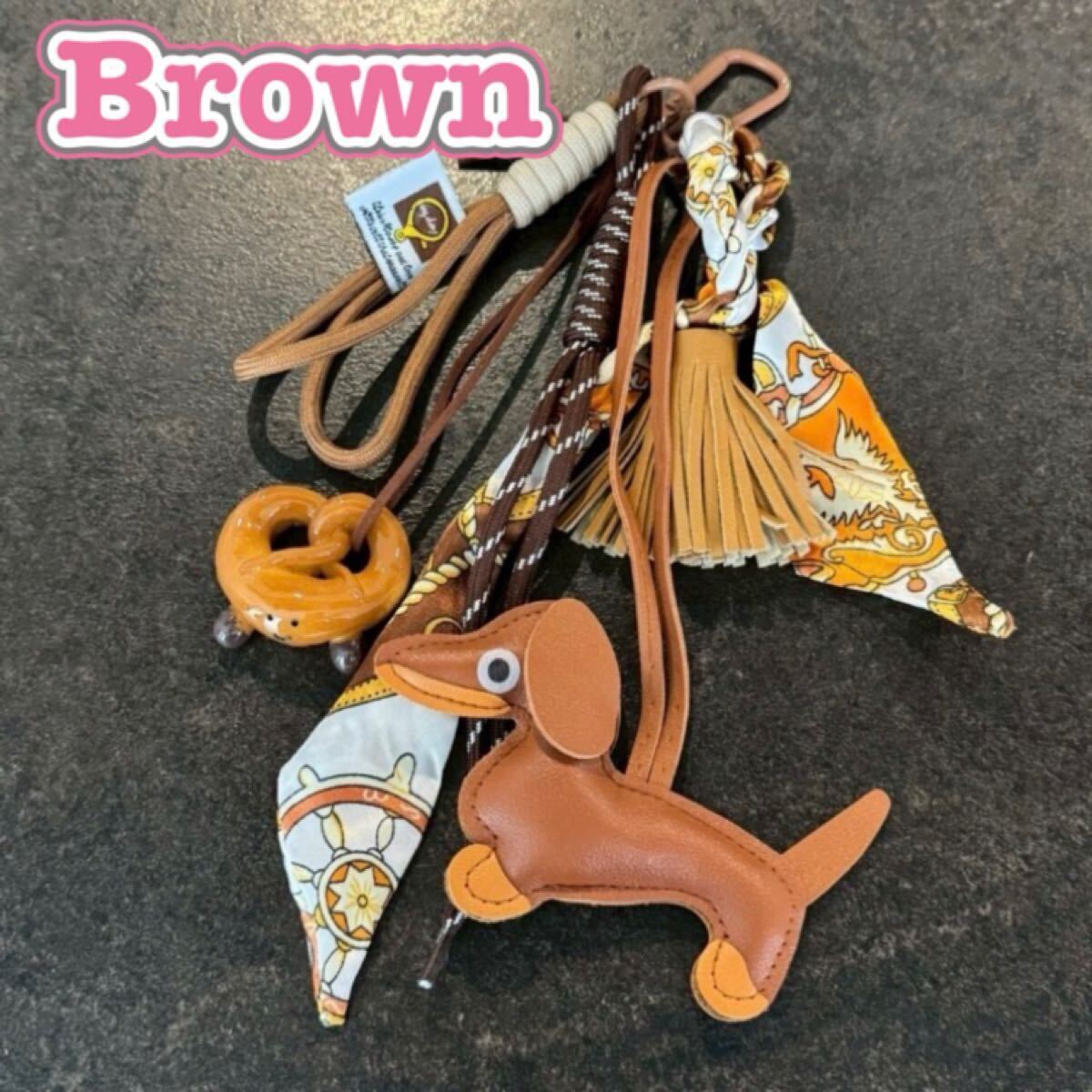 - キーホルダー キーリング バッグチャーム ダックスフンド パラコード じゃらじゃら ブラウン レディース キッズ小物 新品