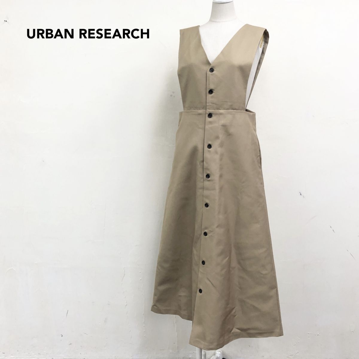 > 2K2141-K◆良品 URBAN RESEARCH アーバンリサーチ ロングジャンパースカート◆sizeFree ベージュ 前開き 綿100% カジュアル レディース