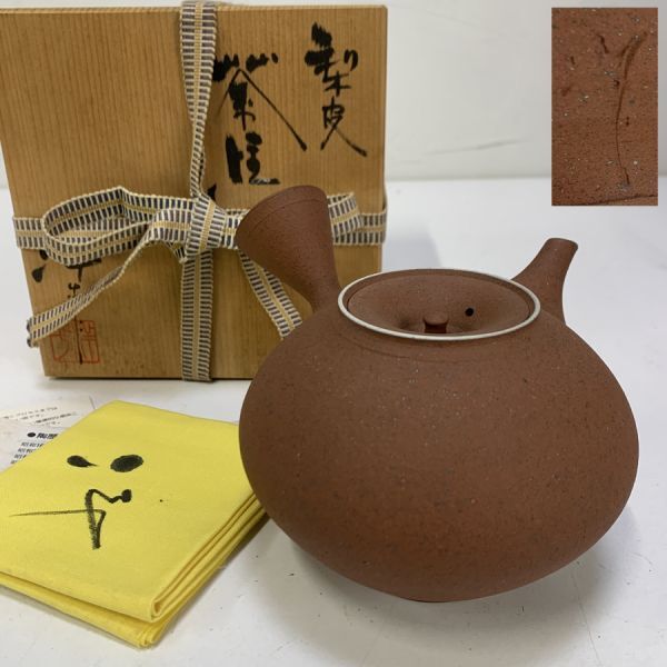 - 常滑名工 小西洋平 常滑焼 梨皮泥横手急須 共箱 茶注 煎茶道具 煎茶器