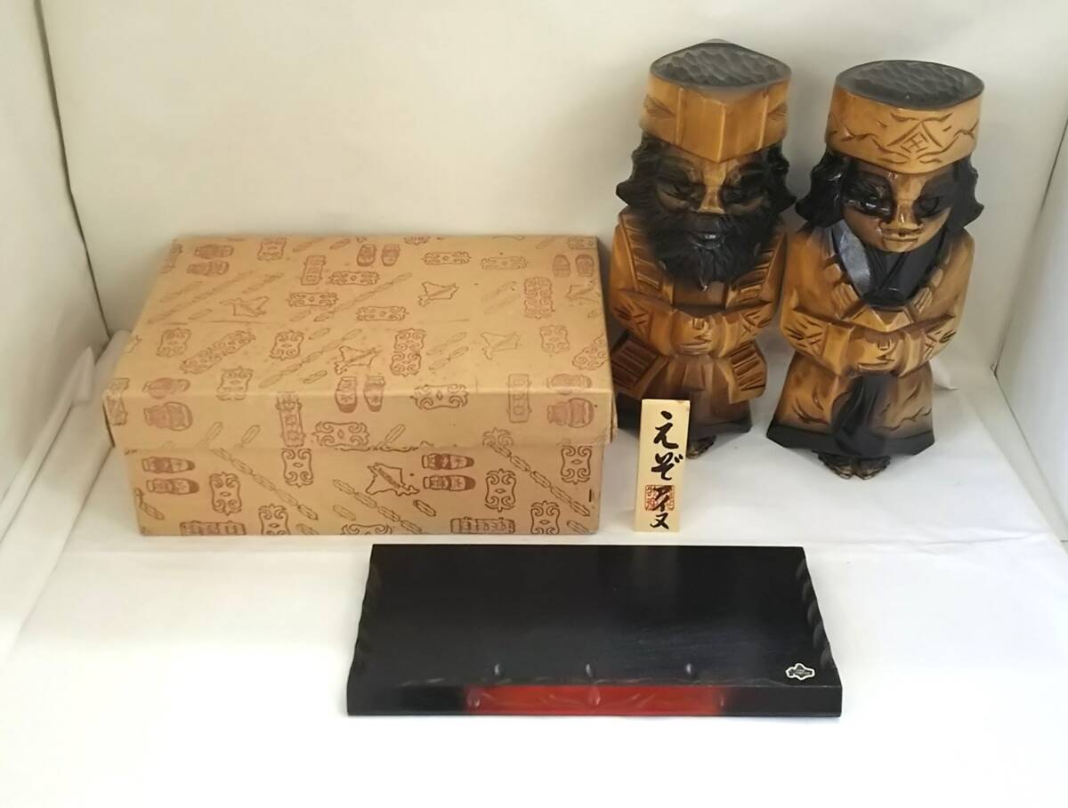 - 【丸-2096】北海道特選民芸品 えぞアイヌ 木彫り 夫婦人形/ペア/ニポポ人形/昭和レトロ/お土産/アイヌこけし/中古(IT)
