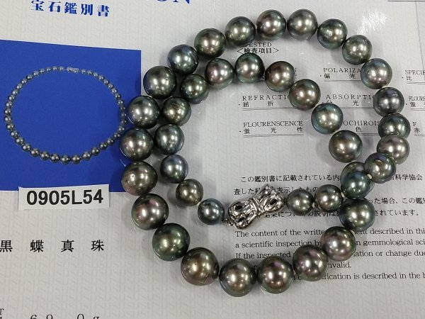 - 0905L54 本真珠 黒蝶真珠 ネックレス 宝石鑑別書付 約69.0g