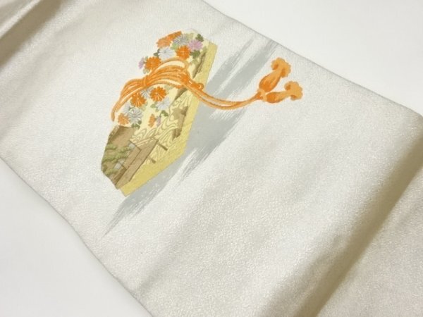 > ys6906024; 宗sou 文箱に菊・民家・松模様刺繍名古屋帯【着】