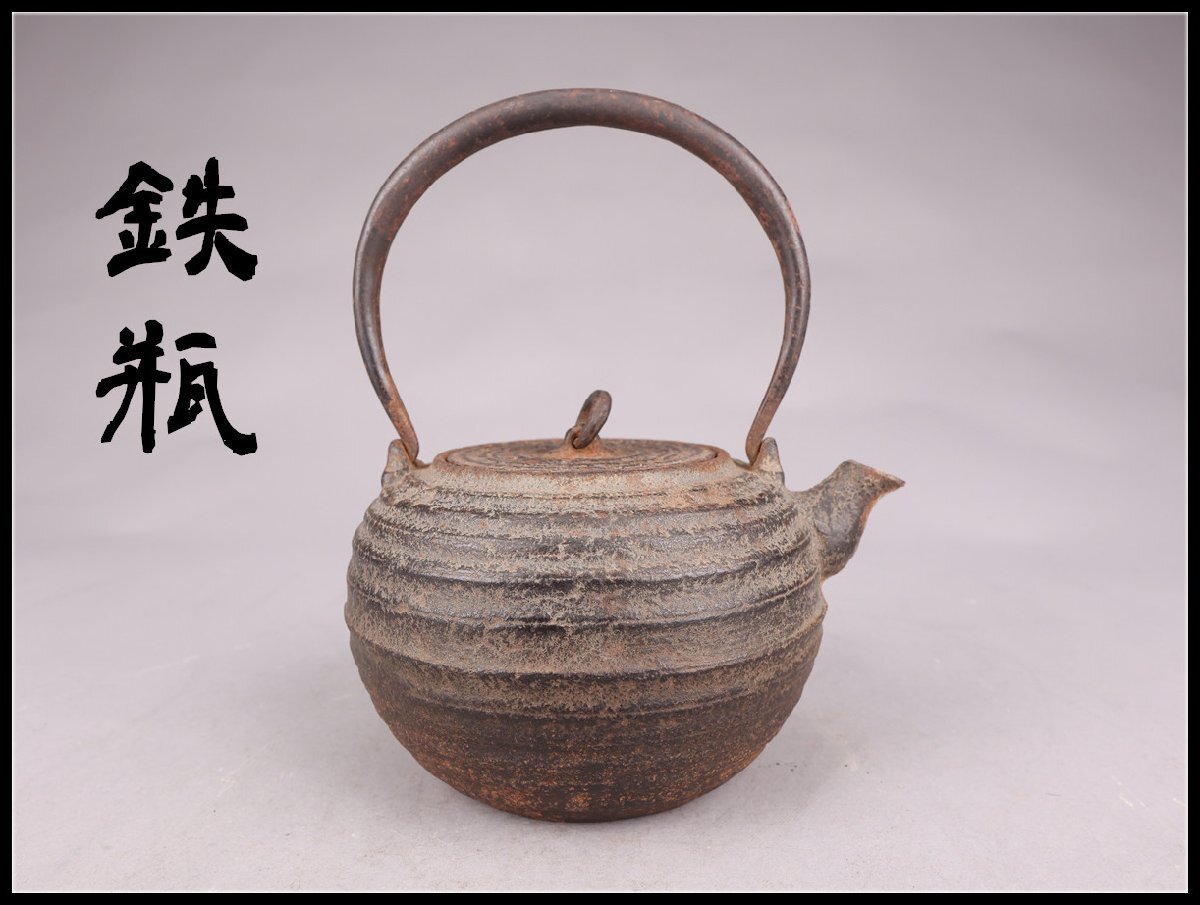 - 【志】A928鉄瓶 無銘 鉄蓋 湯沸 茶道具 重量1012g 800ml【+=