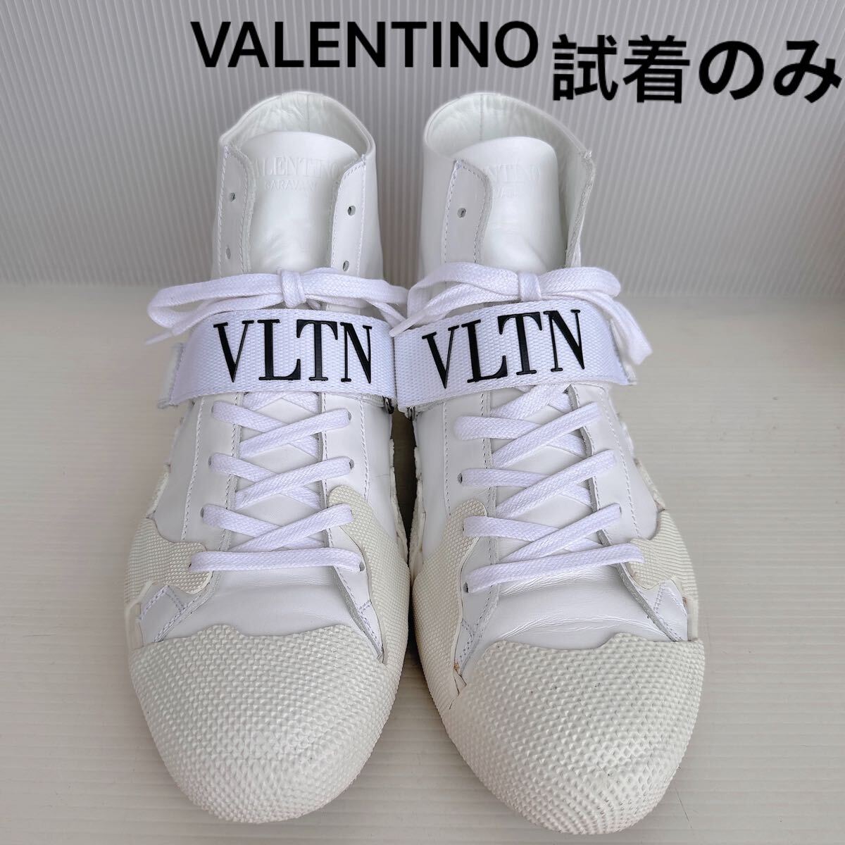 > VALENTINO GARAVANI ヴァレンティノ VLTN ロゴ入り ハイカット スニーカー レースアップ ホワイト 白 レザー ラバー 42 靴 メンズ シューズ