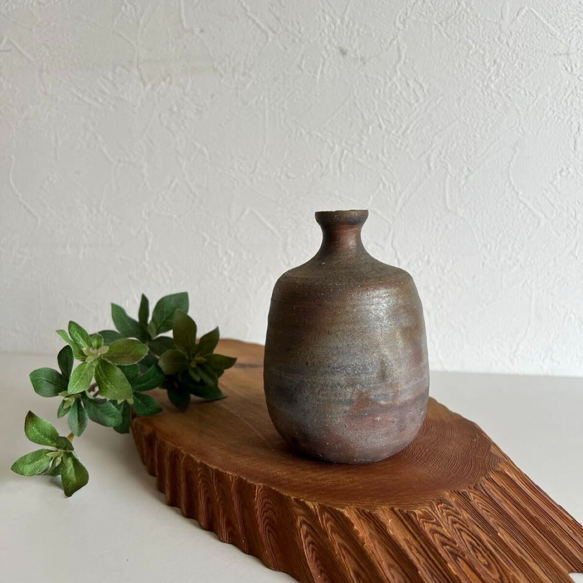 - wasabi k895 備前焼 徳利 一輪挿し 花入れ 色彩深く味わいある窯変 火変わり 花器 花瓶・飾り壷 陶印有り 和陶器 和のインテリア やきもの