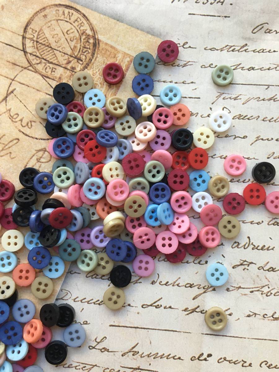 - 四つ穴 約6mmボタン 20個 ミニボタン ランダム色 極小 小さめ ハンドメイド材料 デコ材料 ドール用 人形用 ミニチュア用 257