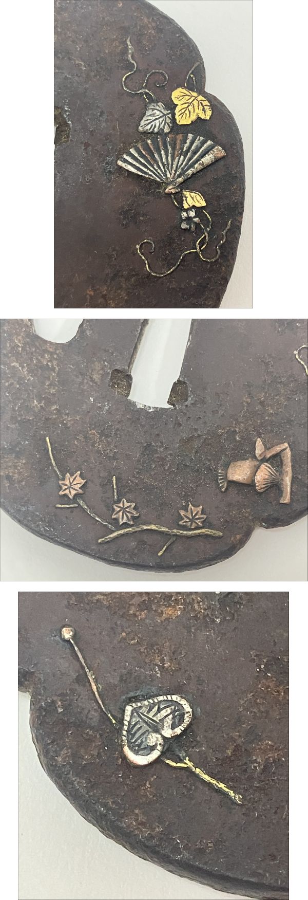 > H09221 1円出品 骨董品 骨董 刀道具 鍔 つば 無銘 扇子 木 図 日本刀装具 重量 約89g コレクション