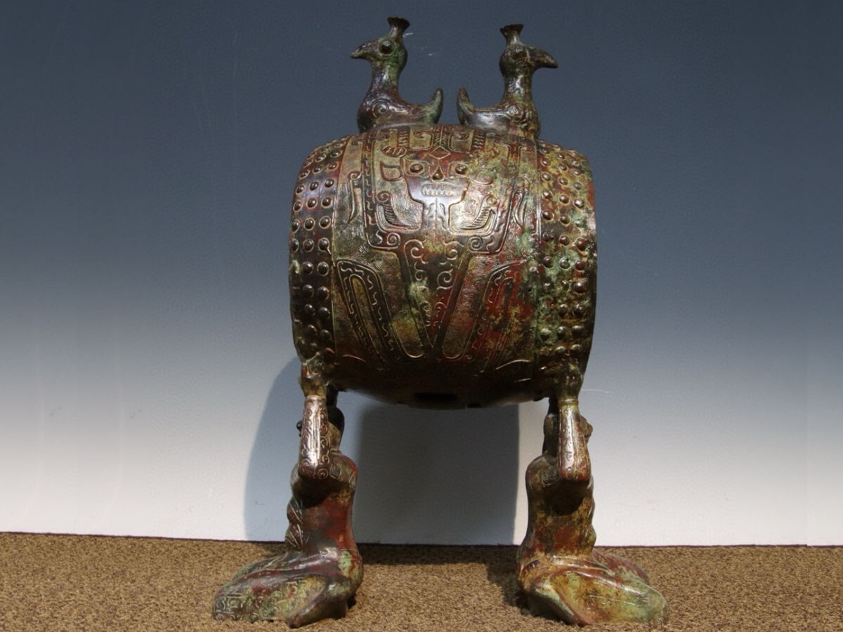 - 「商周時期 青銅器彫 銘文青銅鼓」青銅器 置物擺件 賞物 中国古美術 旧蔵出