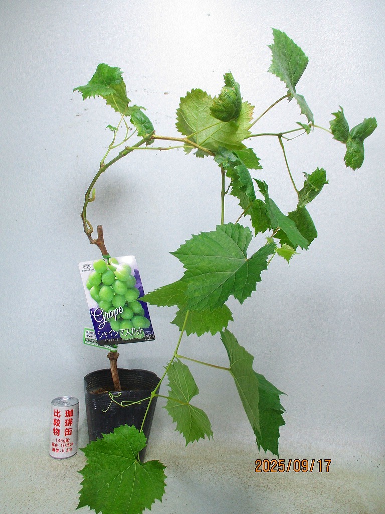 - [野風苗木流通]ブドウの苗木 シャインマスカット(91370黒ポット)全高:70㎝※同梱包は「まとめて取引」手続厳守※120サイズ*送料明記