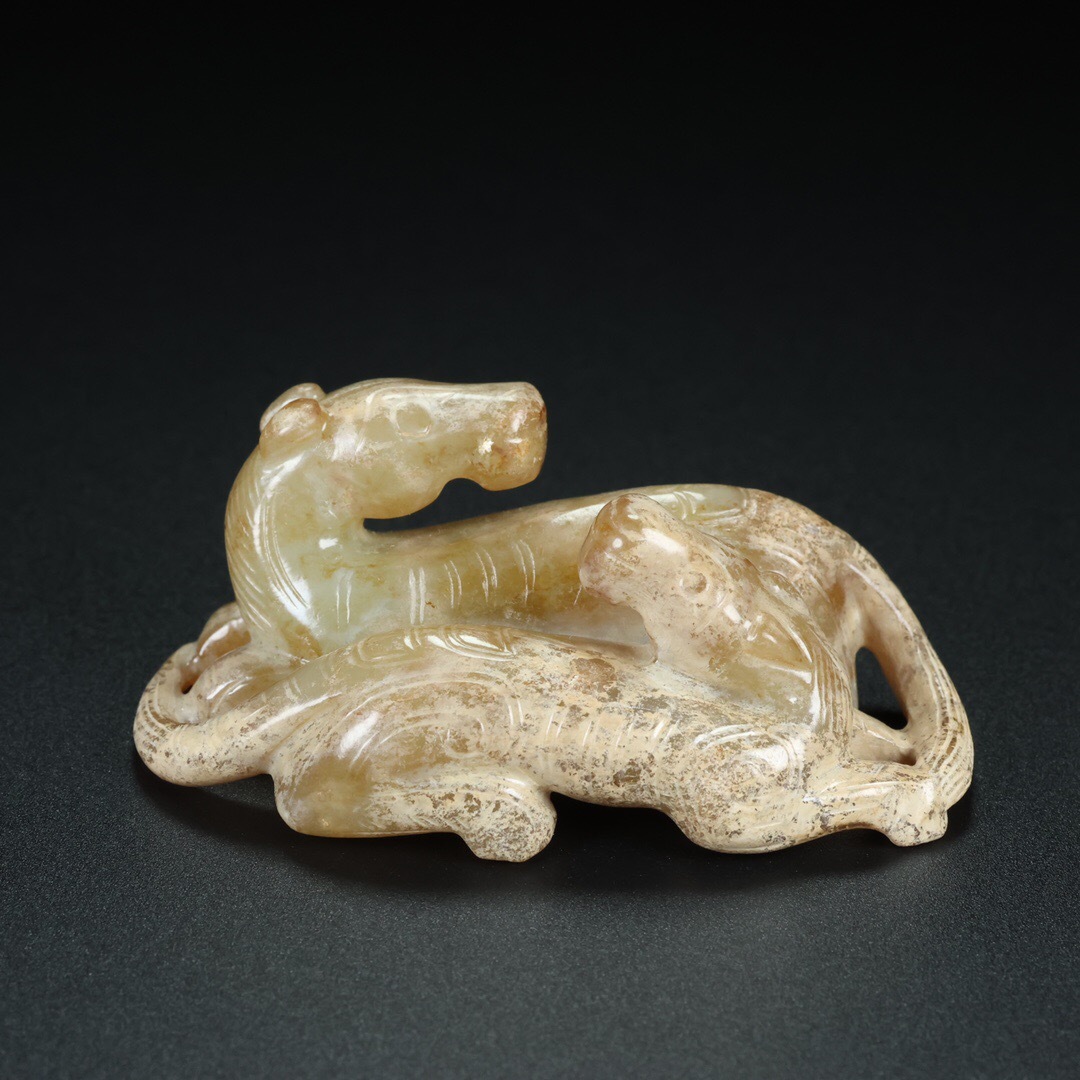 - ▽鴻▽ 和田玉製 細密彫 雙歡 置物 賞物 古賞物 古董品 時代物 稀少珍品 中国古玩 中国古美術