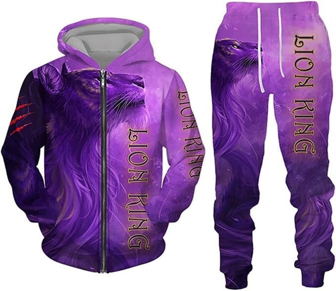 - ジャージ メンズ ライオン柄 上下セット 長袖 フードパーカー ジップ ゆったり ロングパンツ プルオーバー トレーニング スポーツウェア