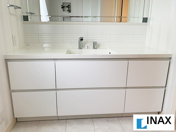 - ■EM707I/モデルルーム展示品/LIXIL/INAX/イナックス/洗面化粧台/モダンデザイン/リフォーム/ホワイト人造大理石天板