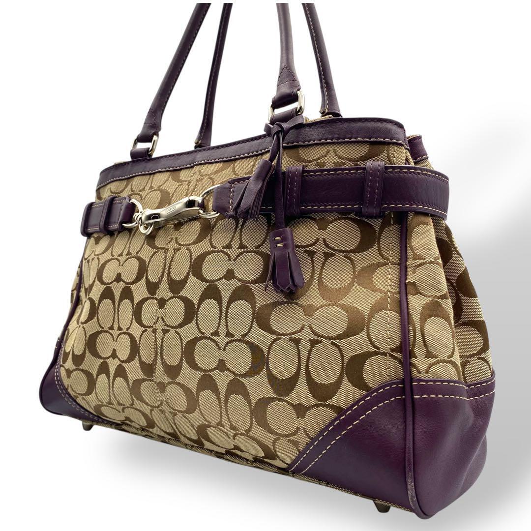 - 極美品 COACH コーチ ショルダーバッグ シグネチャー キャンバス 底鋲 紫