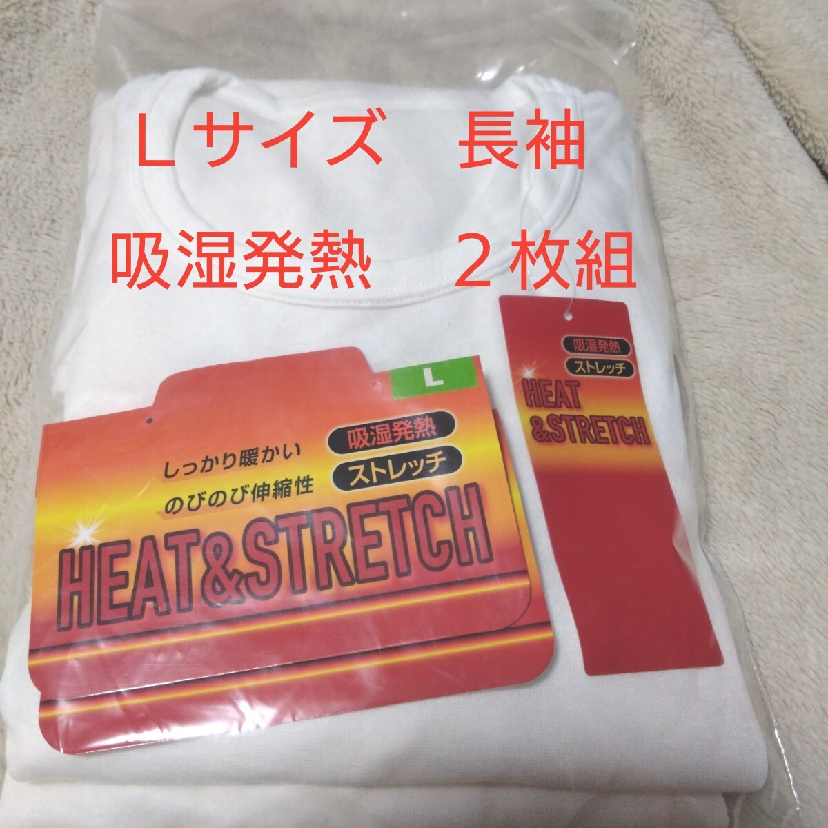 - ⑤メンズ 紳士 インナーウェア 吸湿発熱 保温 あったか ストレッチ Lサイズ 長袖 丸首 2枚組