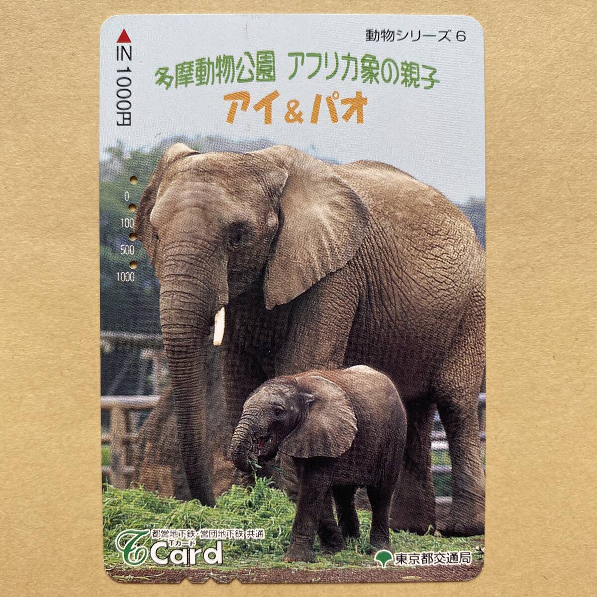- 【使用済】 Tカード 東京都交通局 動物シリーズ6 多摩動物公園 アフリカ象の親子 アイ&パオ