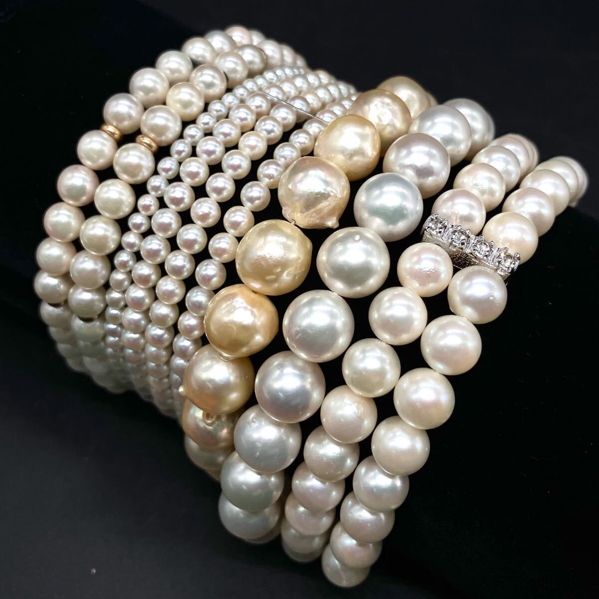 > K18/K18WG入り!!約2.5-9.0mm珠【セット売り】◆アコヤ本真珠ブレスレット6点おまとめ◆S 約95.7g パール pearl bracelet EB2/EE3 M651