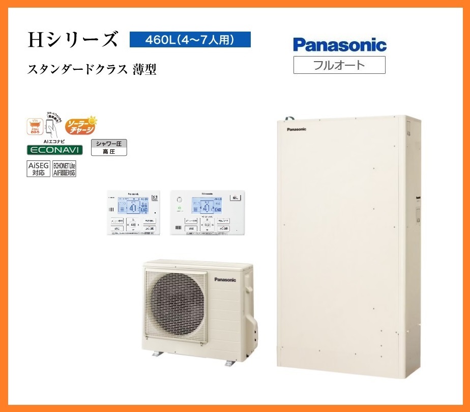 - 激安 Panasonic リモコン付 エコキュート 460L Hシリーズ フルオート 追い焚き 薄型 屋外設置 給湯器 脚部カバー付 HE-H46KQS 新品 [9374]