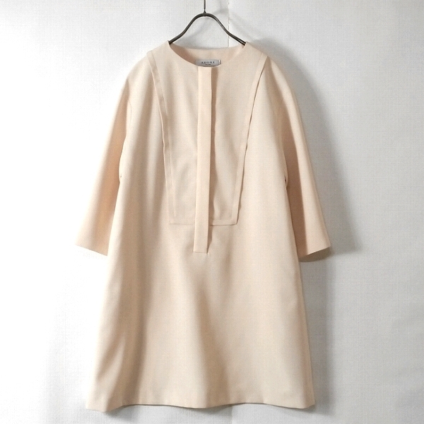 - ADORE アドーア / Aライン ワンピース 36 ベージュ S 比翼 ノーカラー