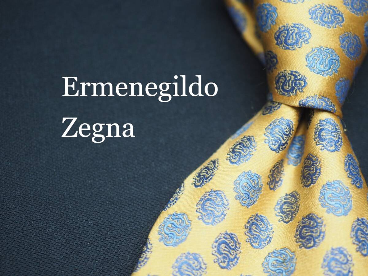 - 美品【Ermenegildo Zegna エルメネジルドゼニア】 F2379 金系 龍 SILK ブランド ネクタイ 古着 良品 転売 仕入