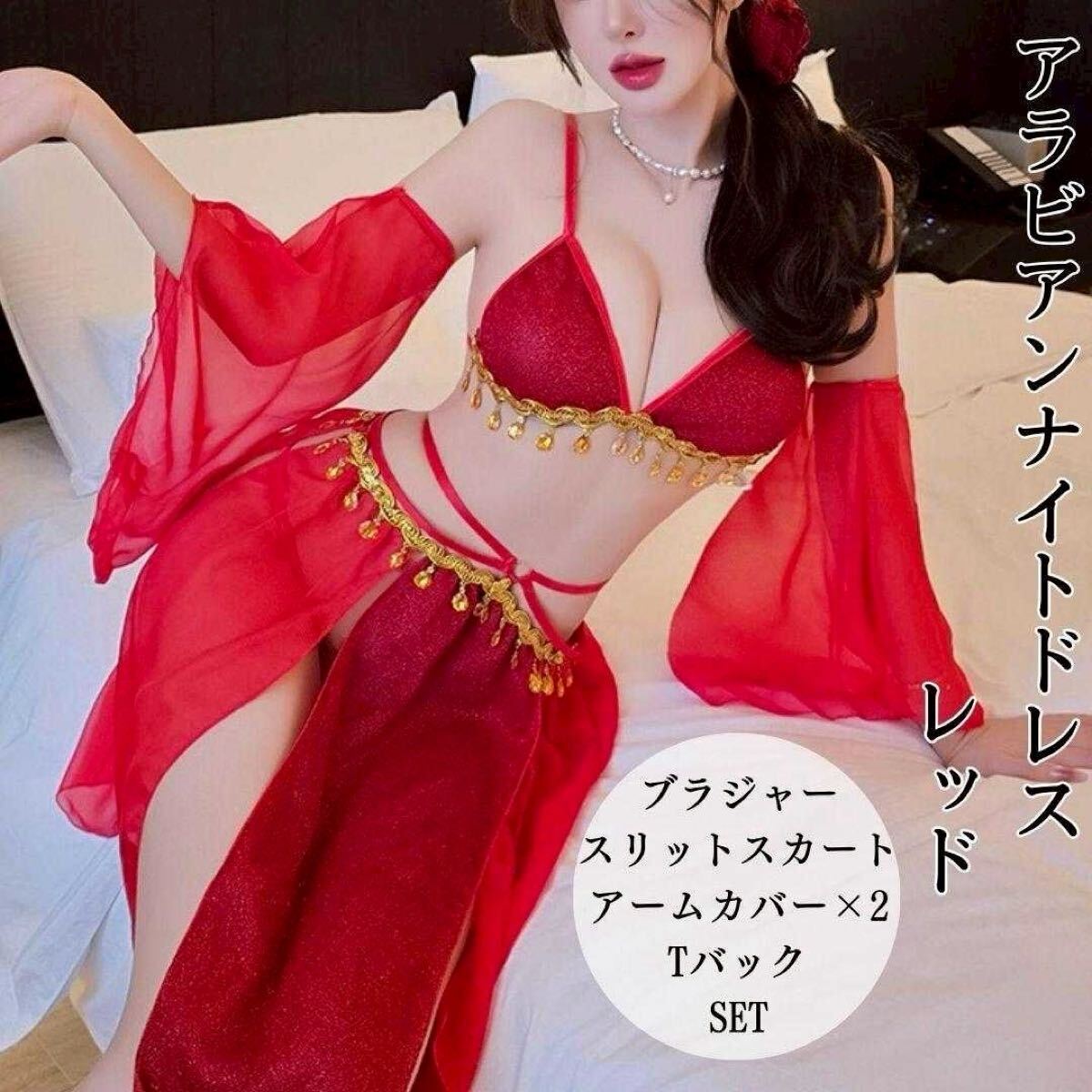 - アラビアンナイト ベリーダンス4点 チャイナ服 コスプレ ランジェリー レッド