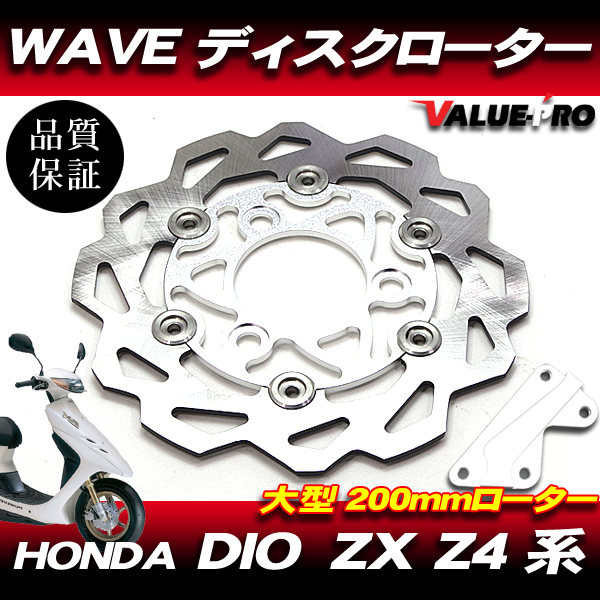> DIO系 WAVEブレーキディスクローター 200mm サポート付 シルバー SL / カスタムローター HONDA ホンダ ディオ ZX Z4 SR