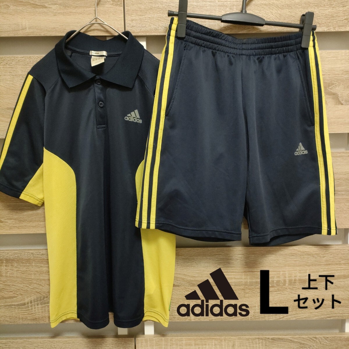 > adidas(アディダス)セットアップ(ポロシャツ&ハーフパンツ)Lサイズ ネイビー 美品(74)紺×黄色 ■宅急便コンパクト発送!