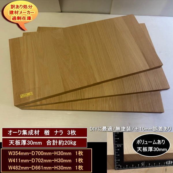 - オーク 楢 ナラ 集成材 端材3点セット 約20kg 無塗装 高級材 354-700-30mm 他2 送料無料 訳あり処分 重量あり DIYにお勧め!