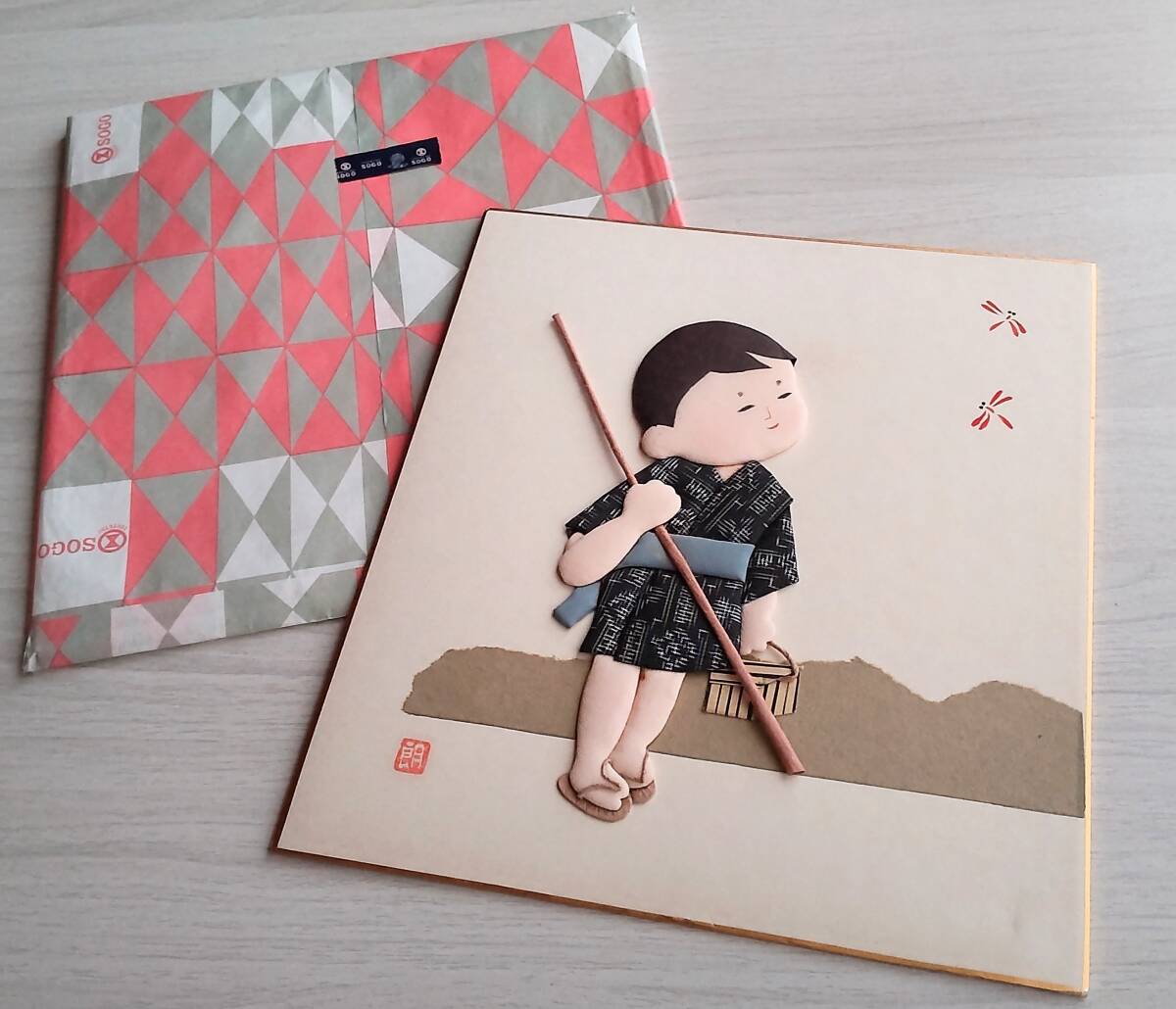 - 押し絵色紙★赤トンボ獲りの男の子★そごう百貨店で購入★秋の風情★日本の和★インテリアやコレクションにどうぞ★昭和レトロ★里山★昔話