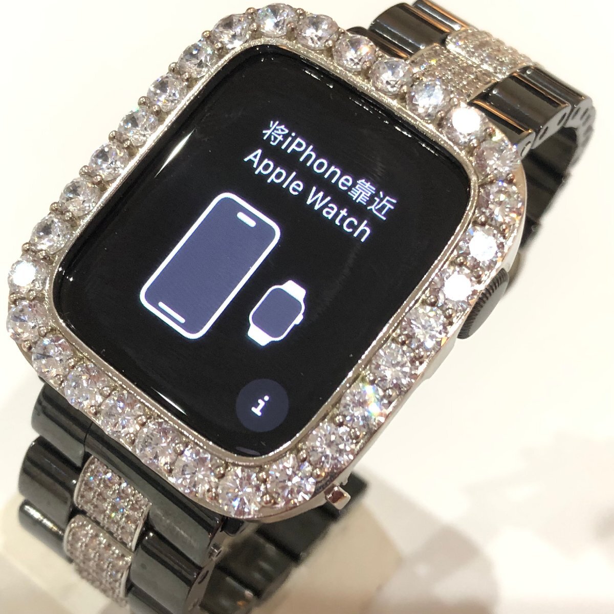 > 【CZダイヤカスタム】Apple Watch SE MYDP2J/A 40mm Space Gray Aluminum Case GPSモデル アップルウォッチ スポーツバンド付