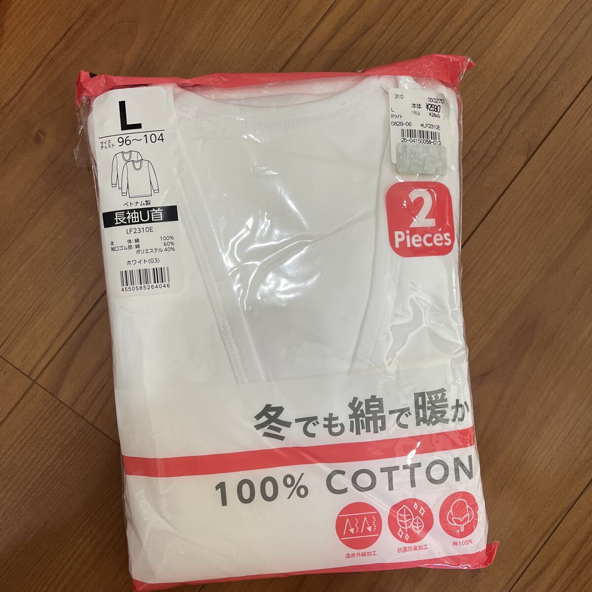 - グンゼ 紳士 綿100 ホワイト 長袖U首 肌着 インナー L 暖かい