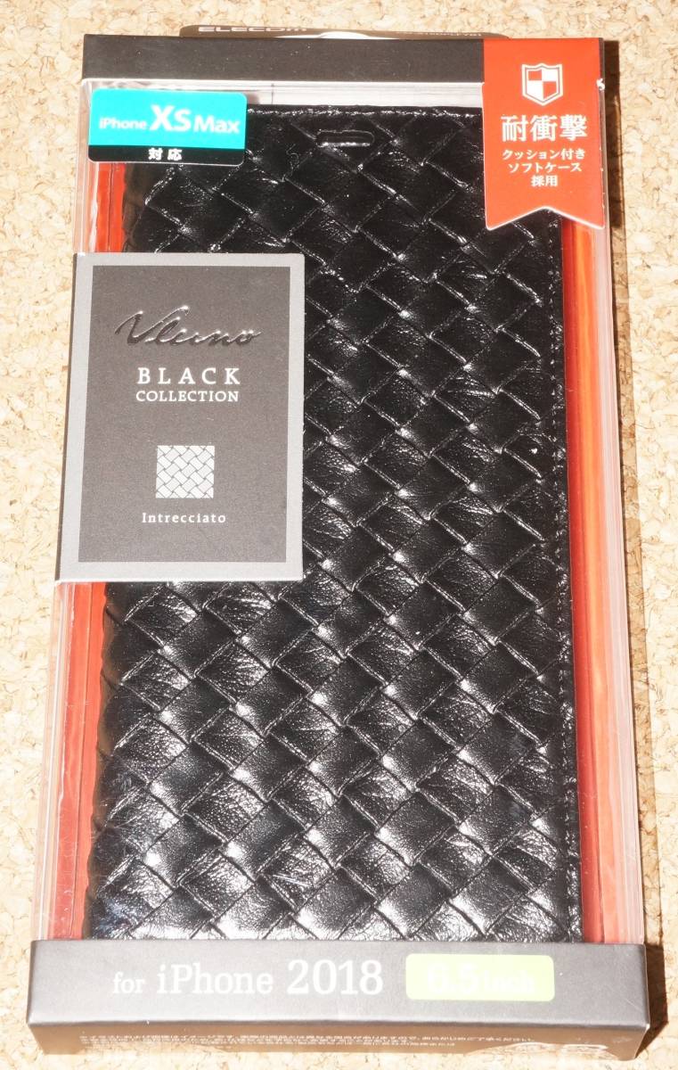 > ★新品★ELECOM iPhone XS Max レザーカバー 編み込み調 ブラック