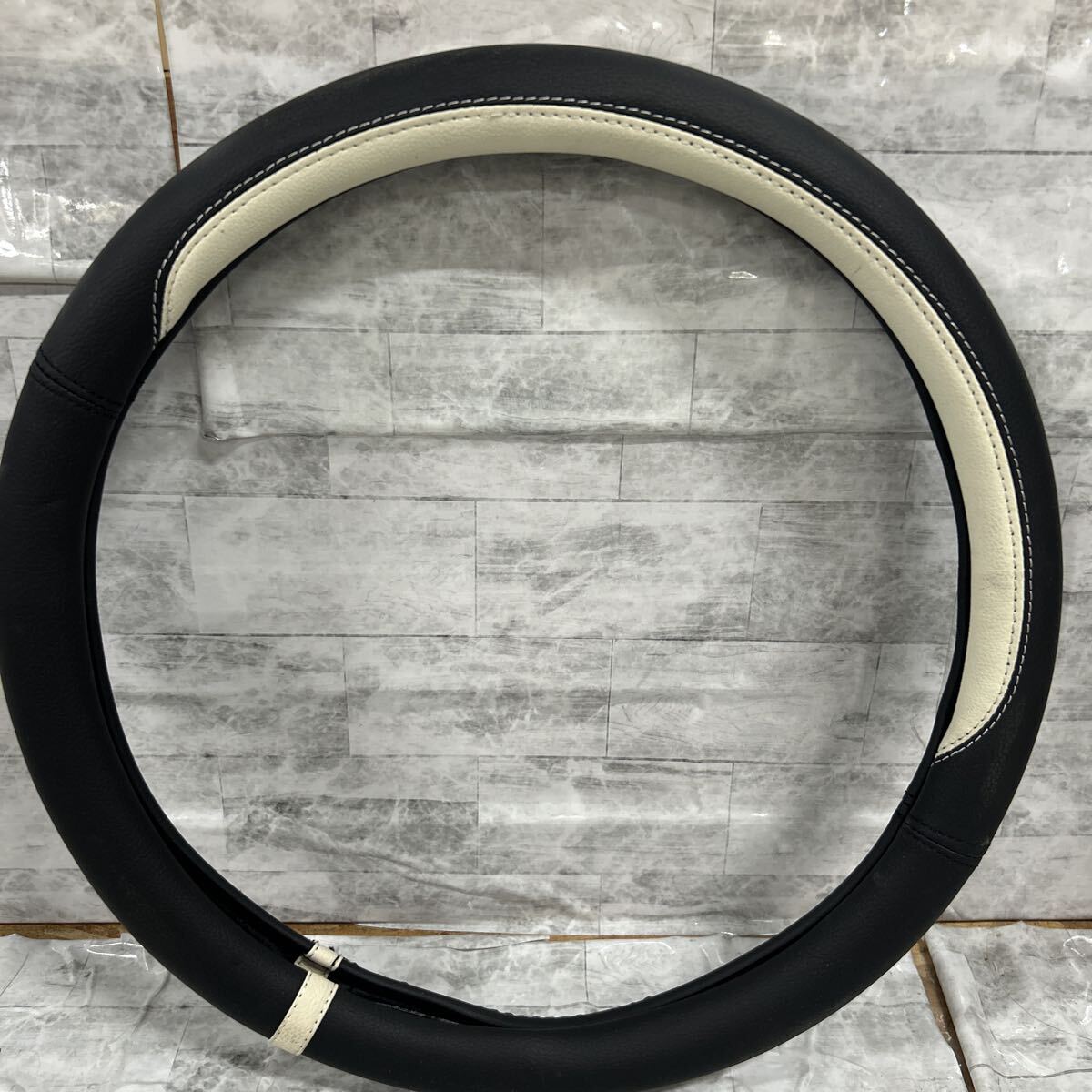 - SKAM-2297▲ ハンドルカバー 車用 軽自動車 約36cm ブラック×ホワイト やや傷汚れあり