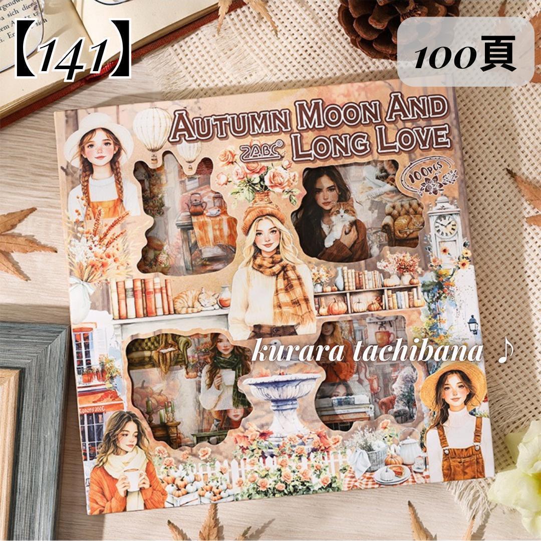 > 【141】箱入り大容量 コラージュ素材 PET シール ステッカー 秋 装飾 ジャンクジャーナル スクラップブッキング デコ アルバム 100頁