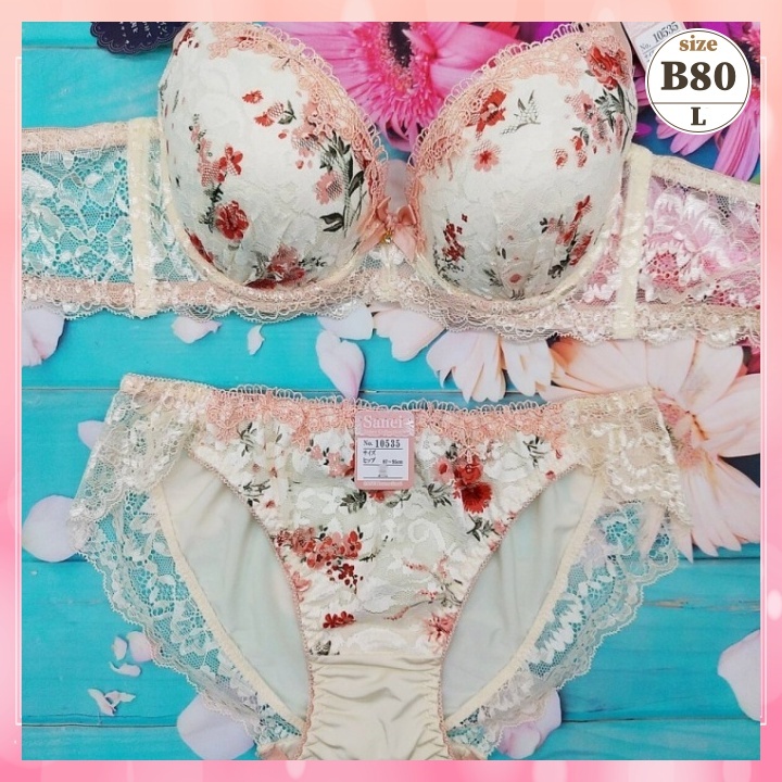 > Zb8035◎新品 ブラショーツセット【B80/L】下着 ランジェリー 脇高 谷間メイク 美胸 ガーデン ピンク