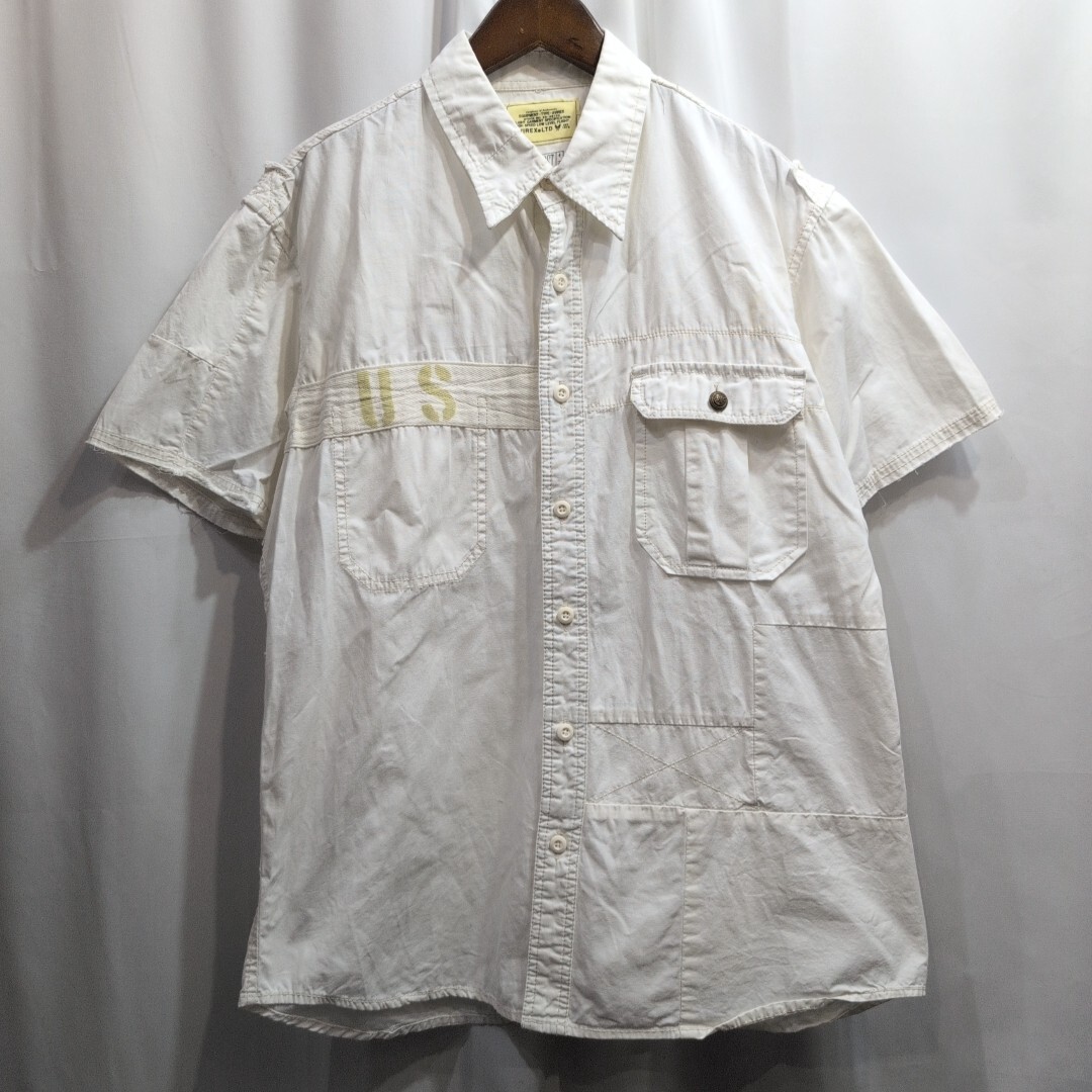 - 【size:XL】AVIREX アヴィレックス 半袖 ミリタリーシャツ メンズ ワークシャツ コットン 白 US ARMY/アルファ/ロスコ/ymclky
