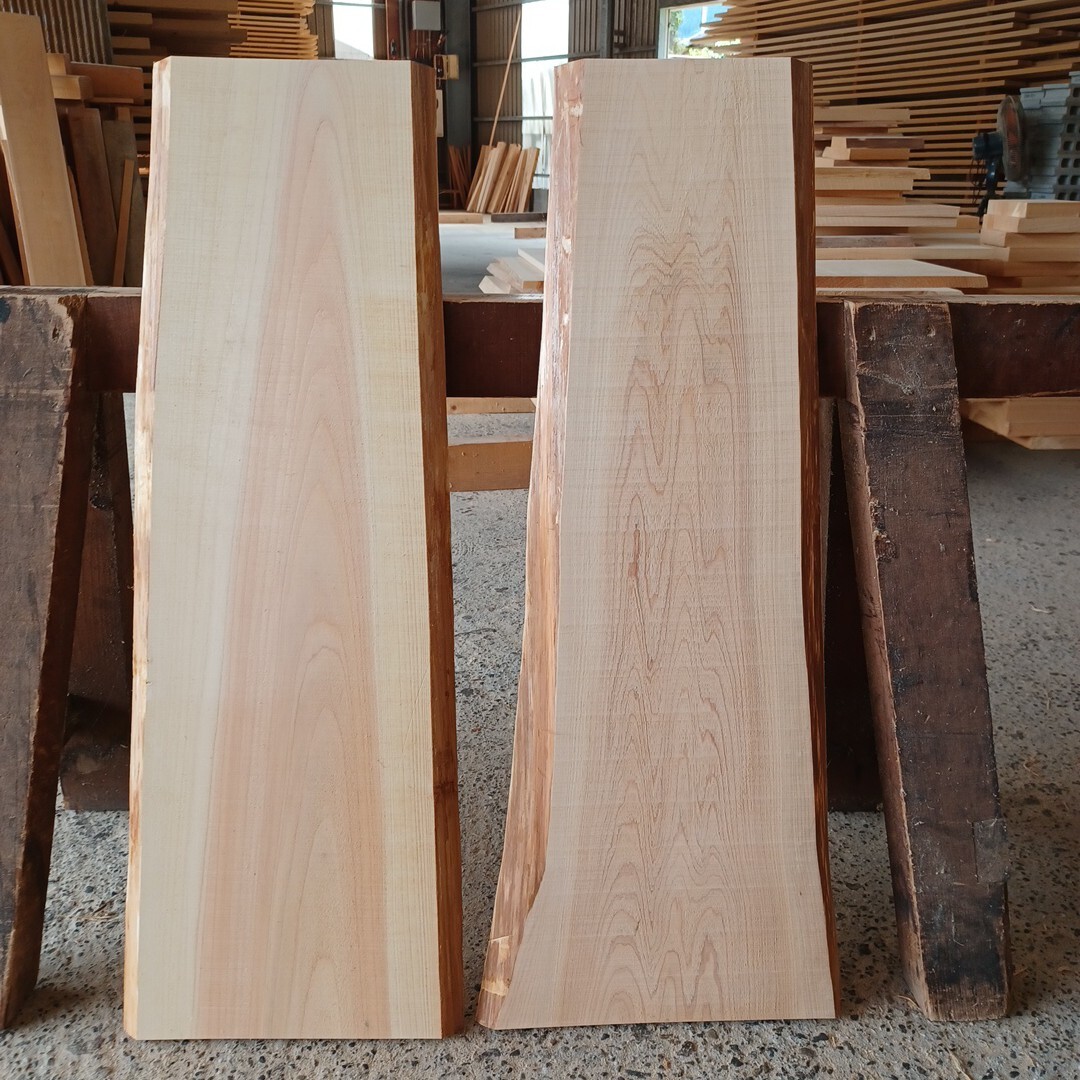- A-2343 国産ひのき 耳付板 2枚セット テーブル 看板 棚板 一枚板 無垢材 桧 檜 DIY