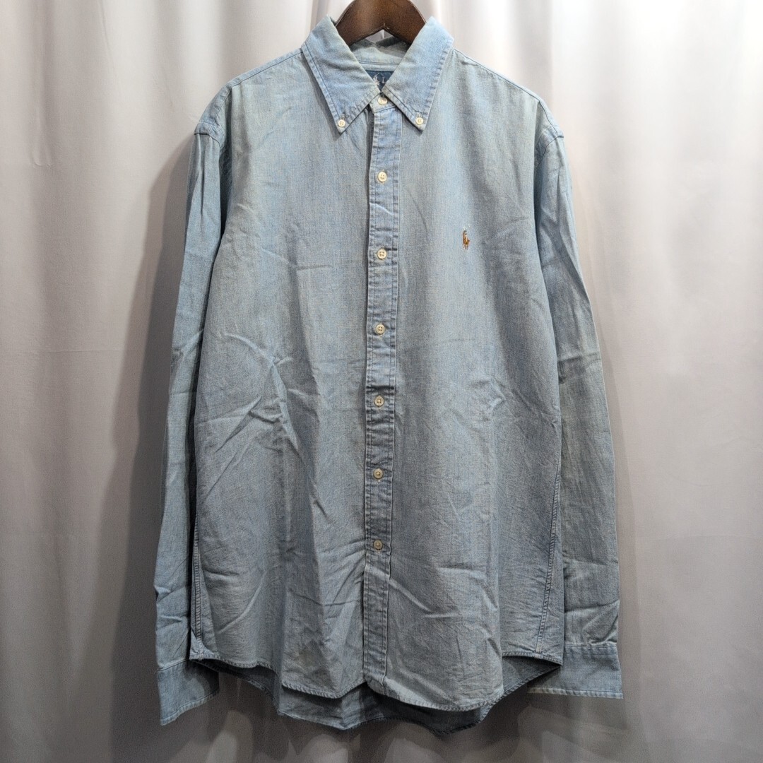 > POLO RALPH LAUREN ポロ ラルフローレン 長袖 シャンブレーシャツ M メンズ 長袖シャツ デニムシャツ ロゴ刺繍 ボタンダウン ワークシャツ