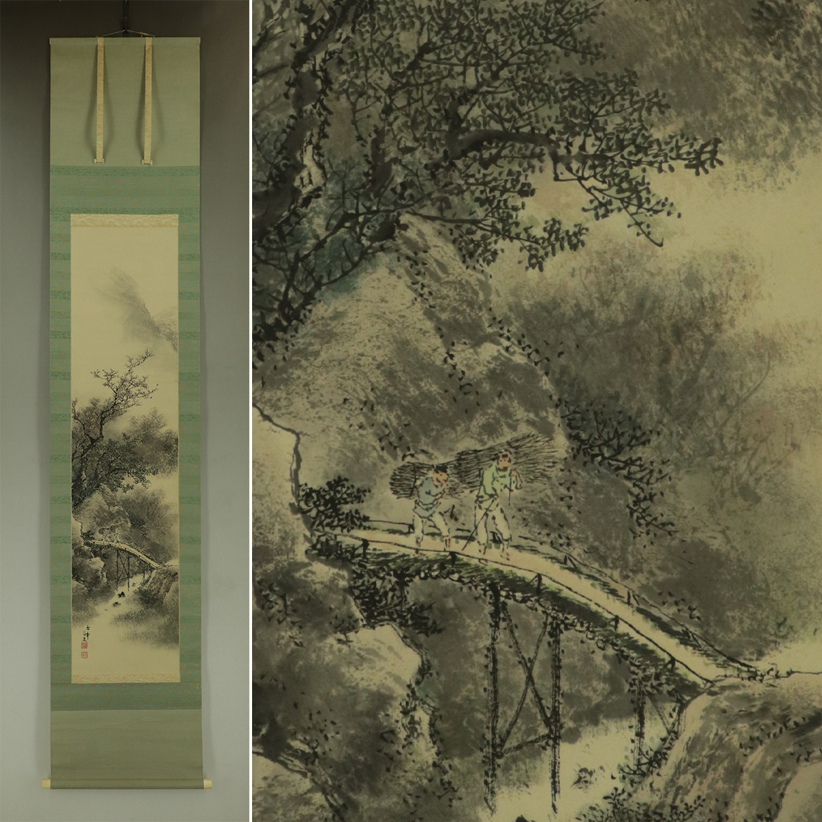 - 【模写】今尾景年【帰樵図】◆紙本◆合箱◆掛軸 s07026
