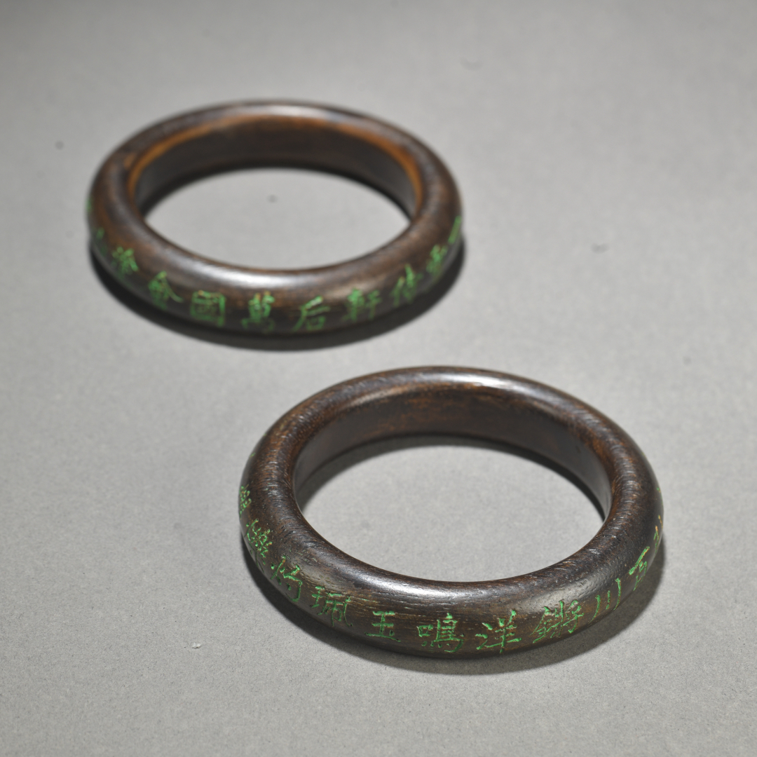 - 多宝閣■ 9912KH.9木工芸品 彫刻品 【詩が刻まれた古い沈香のブレスレット】 中国骨董 時代物 本物 珍品旧蔵 伝世家珍 孤品