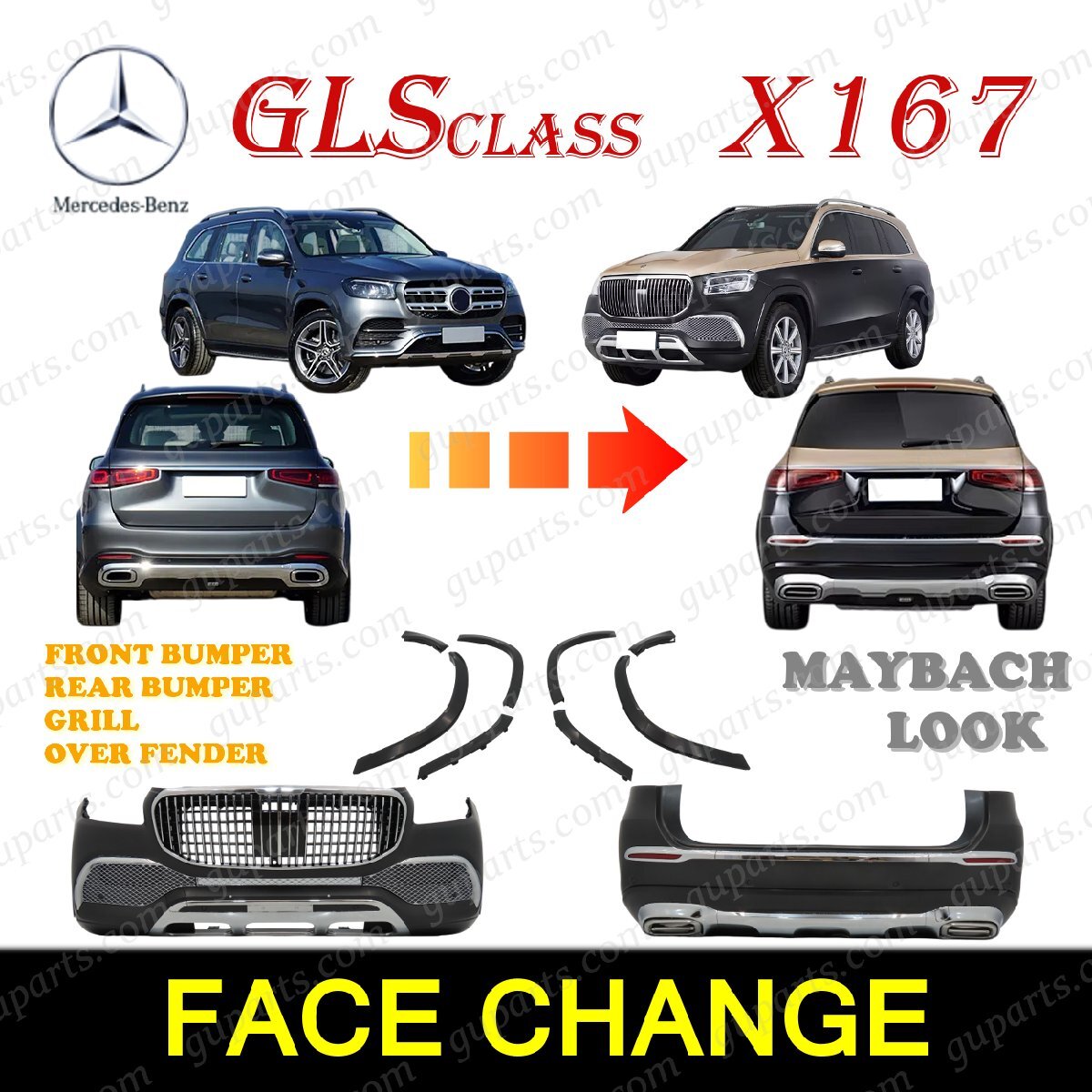 > ベンツ GLSクラス X167 2020~2023 MAYBACH 前期 ルック ボディ キット フロント リア バンパー グリル オーバー フェンダー