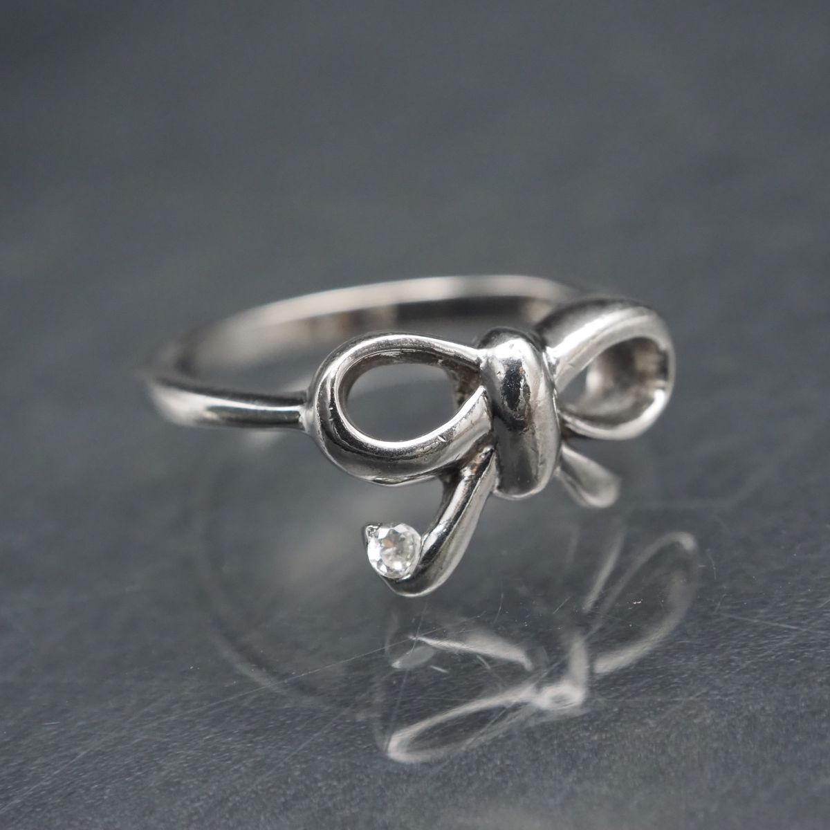 - F726 ダイヤモンド風 925刻印 リング リボン デザイン シルバー 指輪 9号