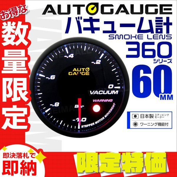 > 【限定セール】オートゲージ バキューム計 60mm 日本製ステッピングモーター ワーニング機能 パーツ一式付き autoguage 360シリーズ