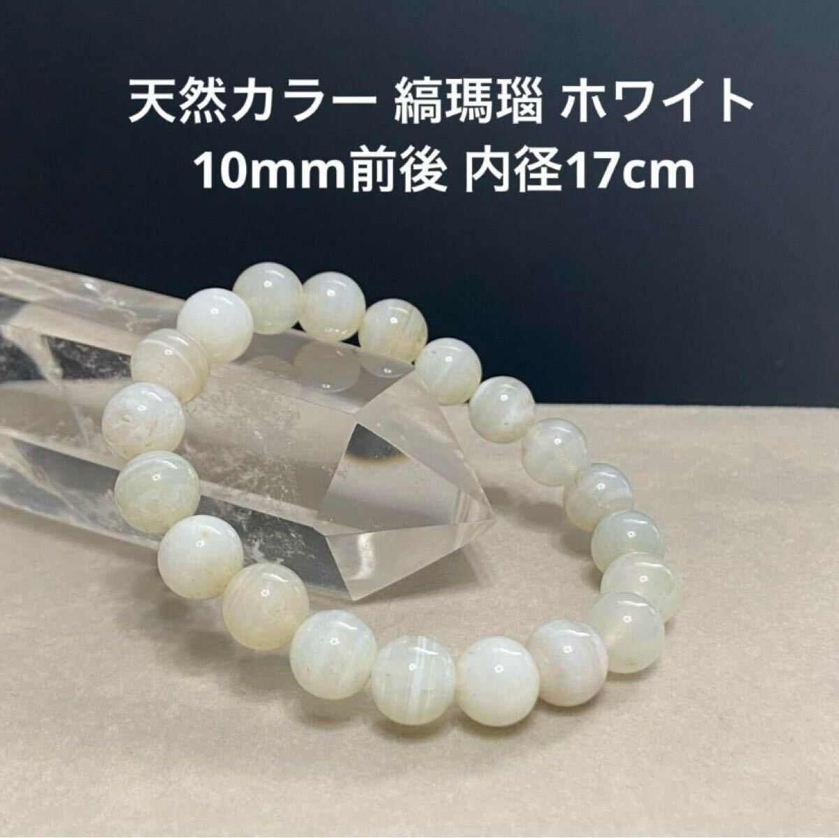 - D955 天然カラー 縞瑪瑙 ホワイト 10mm前後 内径17cm