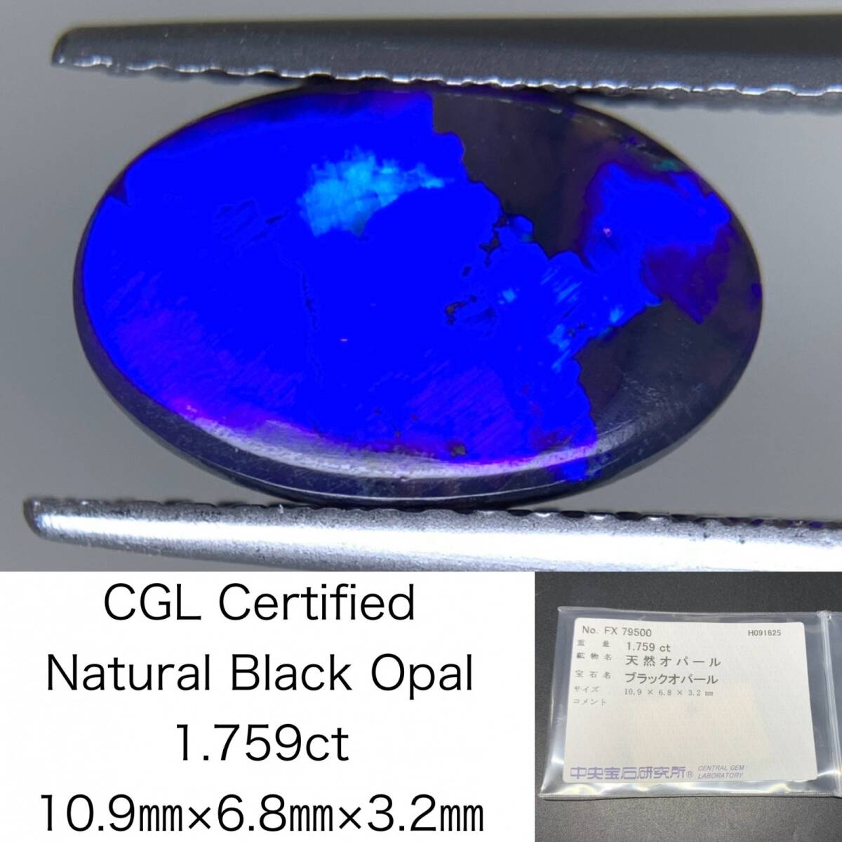 > ブラックオパール 天然 1.759ct 中央宝石ソーティング付き 10.9×6.8×3.2 ルース( 裸石 ) 6838Y
