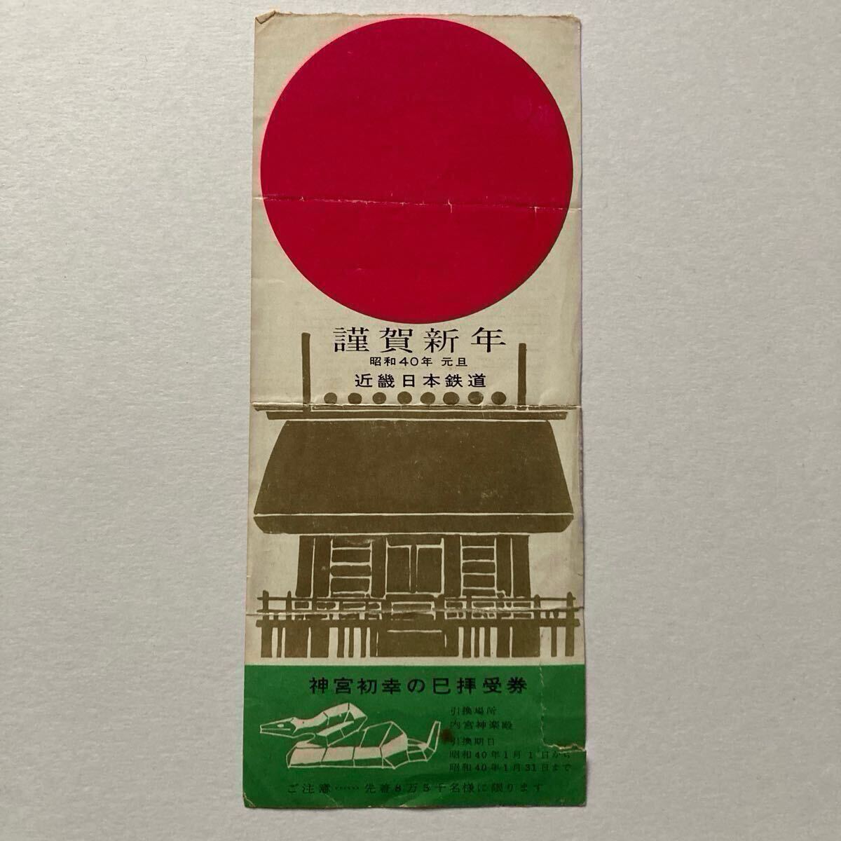 - 【近鉄初詣】謹賀新年神宮初幸の巳拝受券/1965年元旦◆近畿日本鉄道