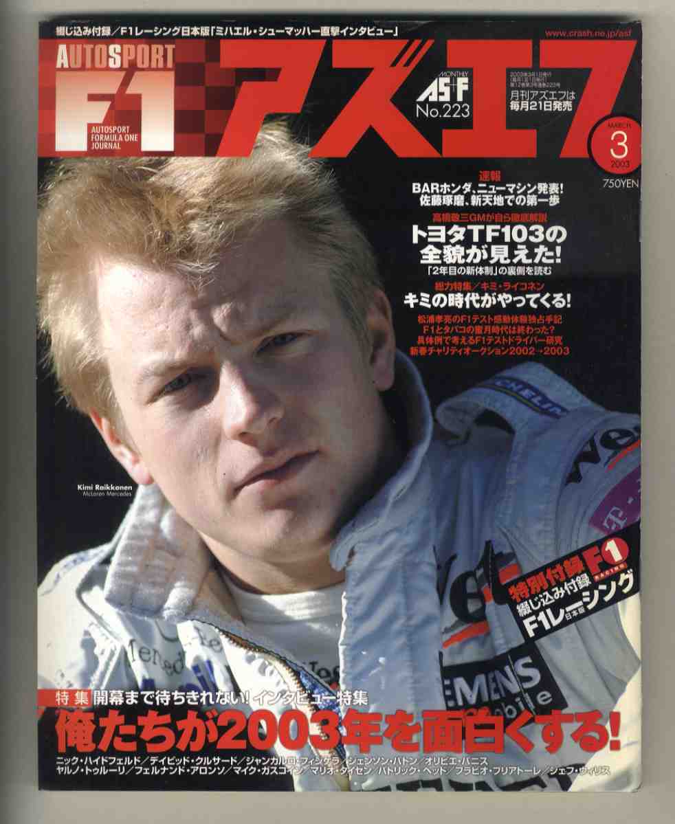 書名/記事: 03.3 アズ・エフ AS+F/インタビュー特集、BARホンダ ニューマシン発表、トヨタTF103の全貌が見えた!、特集=キミ・ライコネン、......