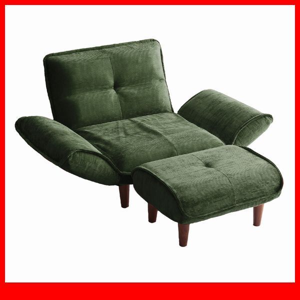 - ソファ★コンパクトソファ 1人掛け オットマン/背もたれ 肘掛け リクライニング/ポケットコイル/ロー ハイタイプ/グリーン/特価 限定/a3