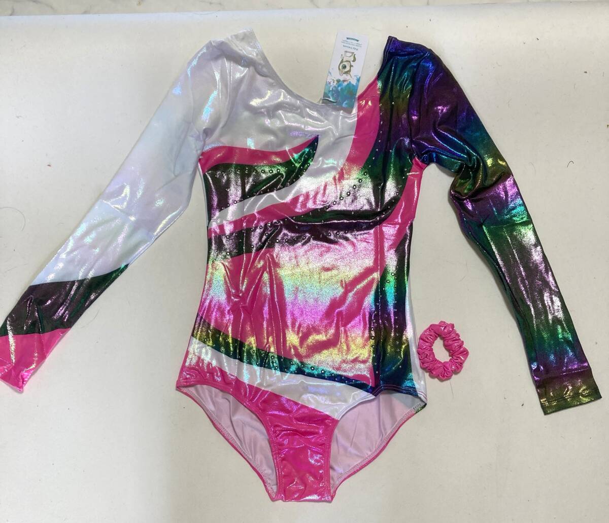 > 新作/US14サイズ/Poly Unicorn HOTPINK22白 黒ロングスリーブ 長袖レオタードシュシュ付 ツルスベ メタリック キラキラ ラインストーン