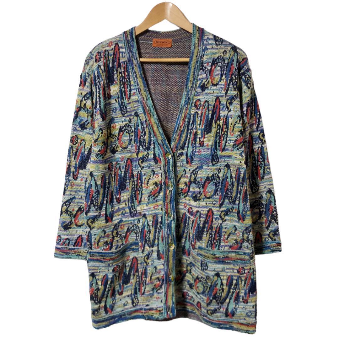 > MISSONI ミッソーニ 総柄 ニット カーディガン ロング 長袖 M マルチカラー イタリア製 オーバーサイズ レディース M2